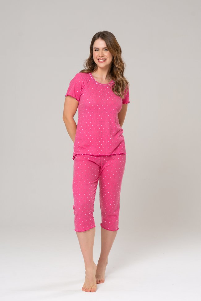 • 01 (um) pijama feminino pescador em pele de pêssego canelado.